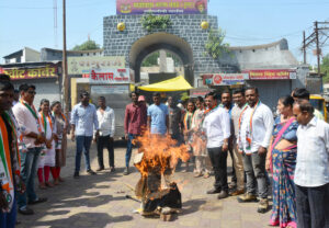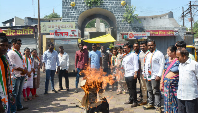 राष्ट्रवादी युवक व युवती काँग्रेसच्या वतीने शहरात इंडिक टेल्सच्या प्रतिकात्मक पुतळ्याचे दहन