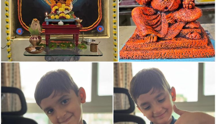рдпрдВрджрд╛ рддреНрдпрд╛рдВрдЪреНрдпрд╛ рдШрд░рд╛рдд рдЦрд╛рд╕ рдХреНрд╖рдг рдШрдбрд▓рд╛ тАУ рддреНрдпрд╛рдВрдЪрд╛ рдирд╛рддреВ рд╡рд┐рд░рд╛рдЬ рд╢реБрднрдВрдХрд░ рдХрд╛рдВрдмрд│реЗ рдпрд╛рдиреЗ рд╕реНрд╡рддрдГрдЪреНрдпрд╛ рд╣рд╛рддрд╛рдиреЗ рдорд╛рддреАрдЪрд╛ рдЫреЛрдЯрд╛ рдЧрдгрдкрддреА рддрдпрд╛рд░ рдХреЗрд▓рд╛!