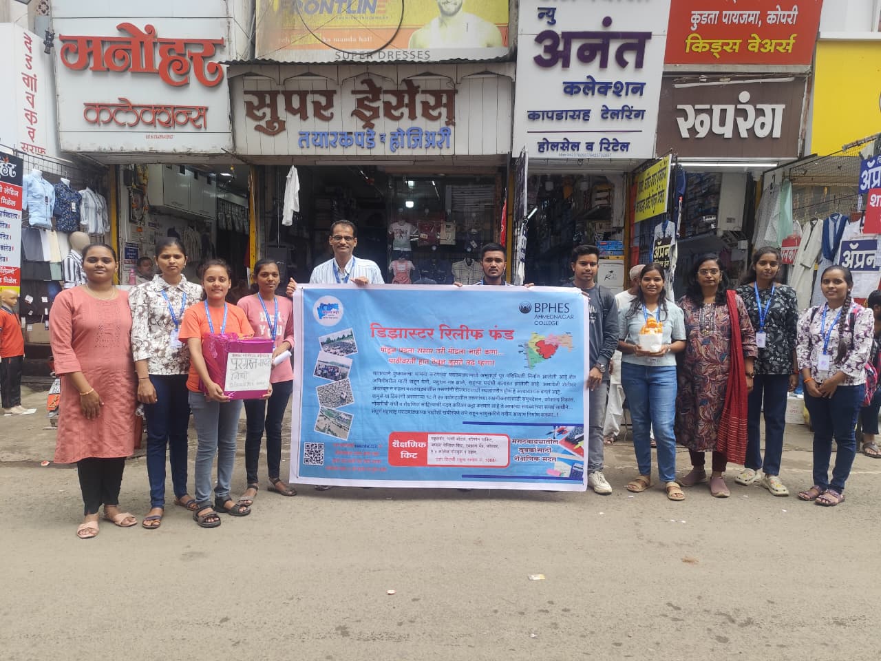 अहिल्यानगर : भा. पां. हिवाळे शिक्षण संस्थेच्या अहमदनगर महाविद्यालयातील करिअर कट्टा आणि विद्यार्थी विकास मंडळाने पुन्हा एकदा समाजासाठी आदर्श निर्माण केला आहे! नुकत्याच झालेल्या पूरग्रस्तांच्या मदतीसाठी निधी संकलन फेरीत विद्यार्थ्यांनी, प्राध्यापकांनी आणि नागरिकांनी दाखवलेली उत्स्फूर्त सहभागाची भावना पाहून सर्वजण भारावून गेले!