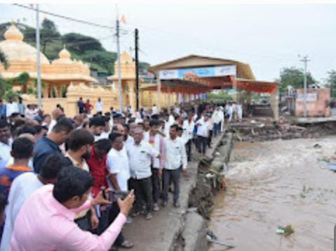 अहिल्यानगर (दि.१६) – पाथर्डी आणि शेवगाव तालुक्यातील नागरिकांनी मुसळधार पावसामुळे भोगलेल्या आपत्तीची जाणीव प्रशासनापर्यंत पोहोचली आहे. या अतिवृष्टीने शेतपीक, फळपीक, घरे, रस्ते, बंधारे, ओढे-पुल यासह एक लाख हेक्टर क्षेत्राचा मोठा भाग बाधित झाला आहे, अशी प्राथमिक माहिती मिळाली आहे. ![🌾]()