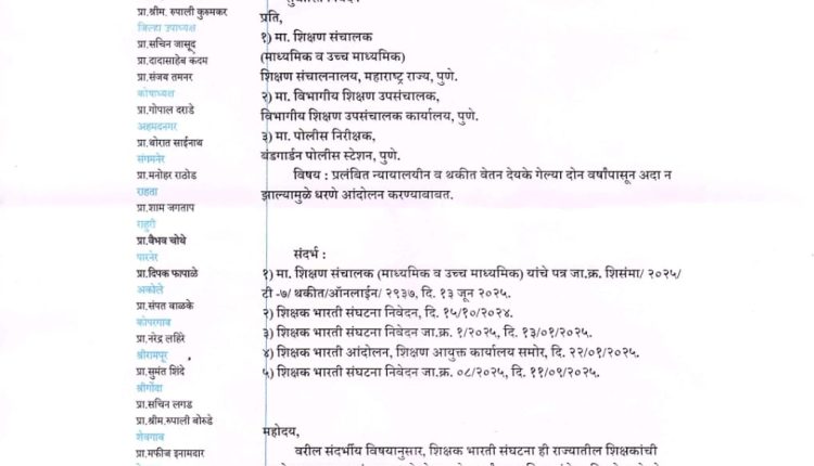 рд╕рдгрд╛рд╕реБрджреАрдд рд╡реЗрддрди рди рдорд┐рд│рдгреЗ рд╣реЗ┬ард╢рд┐рдХреНрд╖рдХрд╛рдВрдЪрд╛ рдЕрдкрдорд╛рди┬ардЕрд╕реВрди, рд╢рд┐рдХреНрд╖рдг рд╡рд┐рднрд╛рдЧрд╛рдЪреНрдпрд╛ рдирд┐рд╖реНрдХреНрд░рд┐рдпрддреЗрдЪреЗ рджреНрдпреЛрддрдХ рдЖрд╣реЗ, рдЕрд╕рд╛ рдЖрд░реЛрдк рд╢рд┐рдХреНрд╖рдХ рднрд╛рд░рддреА рд╕рдВрдШрдЯрдиреЗрдиреЗ рдХреЗрд▓рд╛ рдЖрд╣реЗ.
