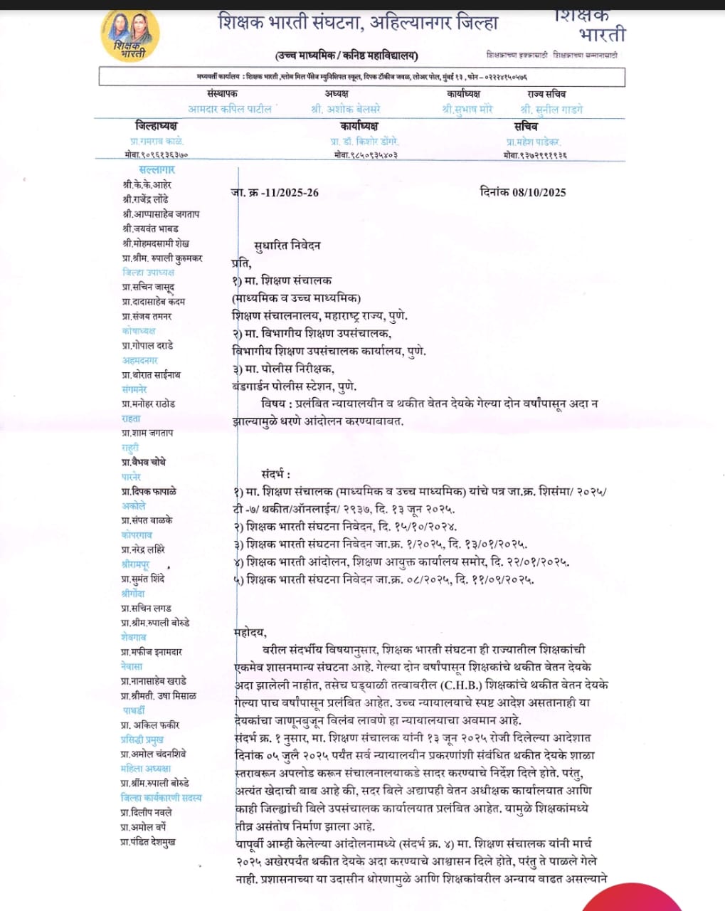 рдЕрд╣рд┐рд▓реНрдпрд╛рдирдЧрд░ (рдкреНрд░рддрд┐рдирд┐рдзреА) тАФ рдиреНрдпрд╛рдпрд╛рд▓рдпрд╛рдиреЗ рд╕реНрдкрд╖реНрдЯ рдЖрджреЗрд╢ рджрд┐рд▓реНрдпрд╛рдирдВрддрд░рд╣реА рд╢рд┐рдХреНрд╖рдХрд╛рдВрдирд╛ рддреНрдпрд╛рдВрдЪреЗ рдердХреАрдд рд╡реЗрддрди рди рдорд┐рд│рд╛рд▓реНрдпрд╛рдиреЗ рд╕рдВрддрд╛рдкрд╛рдЪрд╛ рдЬреНрд╡рд╛рд▓рд╛рдореБрдЦреА рдлреБрдЯрд▓рд╛ рдЖрд╣реЗ!┬а![ЁЯТе]()