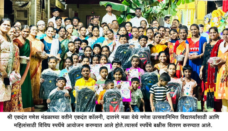 श्री एकदंत गणेश मंडळाच्या वतीने गणेशोत्सवानिमित्त विविध स्पर्धांचे बक्षीस वितरण