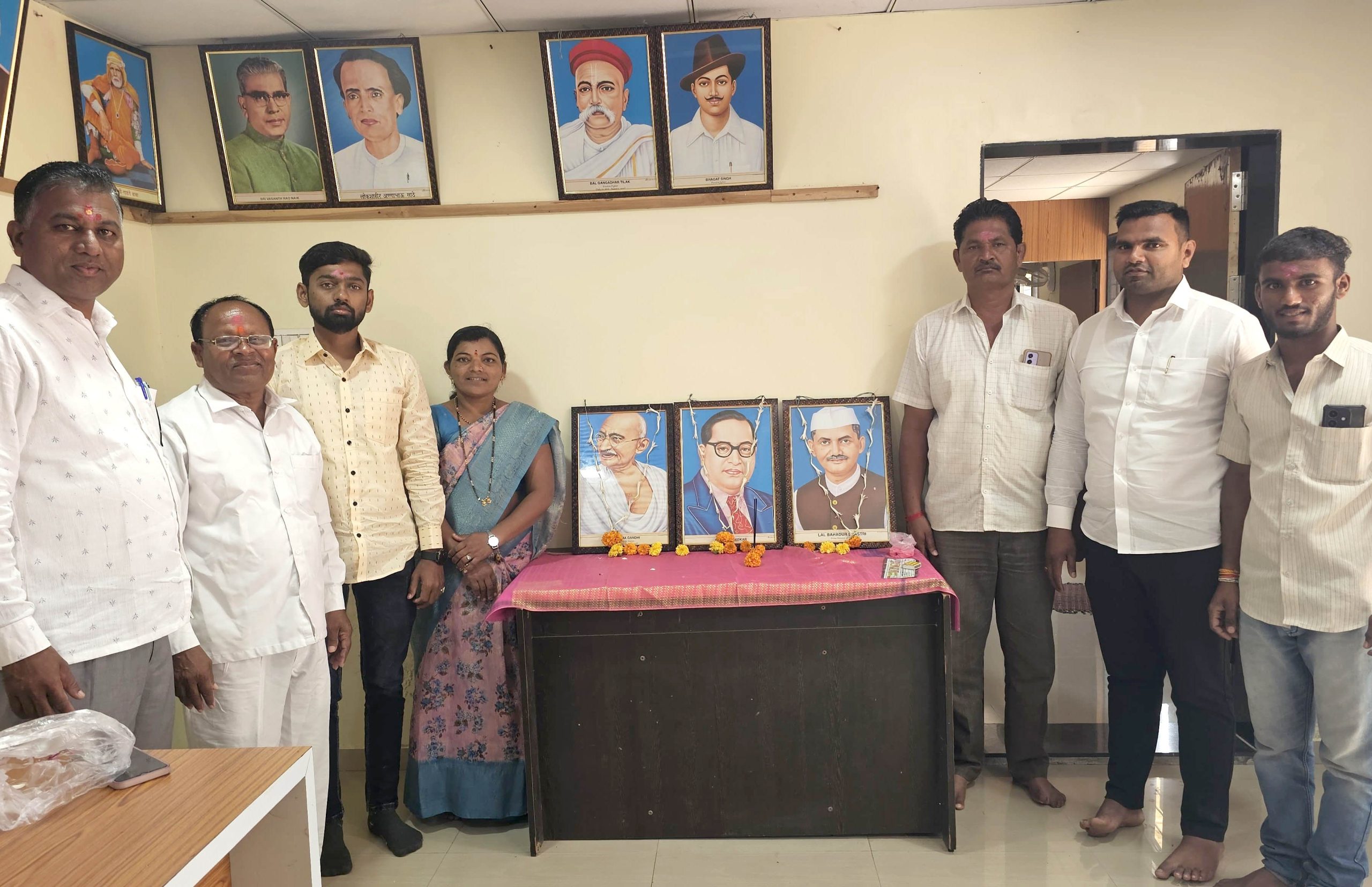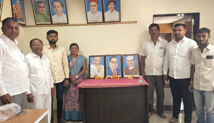 рдХрд╛рд░реНрдпрдХреНрд░рдорд╛рдЪреНрдпрд╛ рдкреНрд░рд╛рд░рдВрднреА рдорд╣рд╛рддреНрдорд╛ рдЧрд╛рдВрдзреАрдЬреА, рдорд╛рдЬреА рдкрдВрддрдкреНрд░рдзрд╛рди рд▓рд╛рд▓рдмрд╣рд╛рджреВрд░ рд╢рд╛рд╕реНрддреНрд░реА рд╡ рднрд╛рд░рддрд░рддреНрди рдбреЙ. рдмрд╛рдмрд╛рд╕рд╛рд╣реЗрдм рдЖрдВрдмреЗрдбрдХрд░ рдпрд╛рдВрдЪреНрдпрд╛ рдкреНрд░рддрд┐рдорд╛рдВрдирд╛ рд╕рд░рдкрдВрдЪ рдЙрдЬреНрд╡рд▓рд╛рддрд╛рдИ рдХрд╛рдкрд╕реЗ рдпрд╛рдВрдиреА рдкреБрд╖реНрдкрд╣рд╛рд░ рдЕрд░реНрдкрдг рдХрд░реВрди рдЕрднрд┐рд╡рд╛рджрди рдХреЗрд▓реЗ.