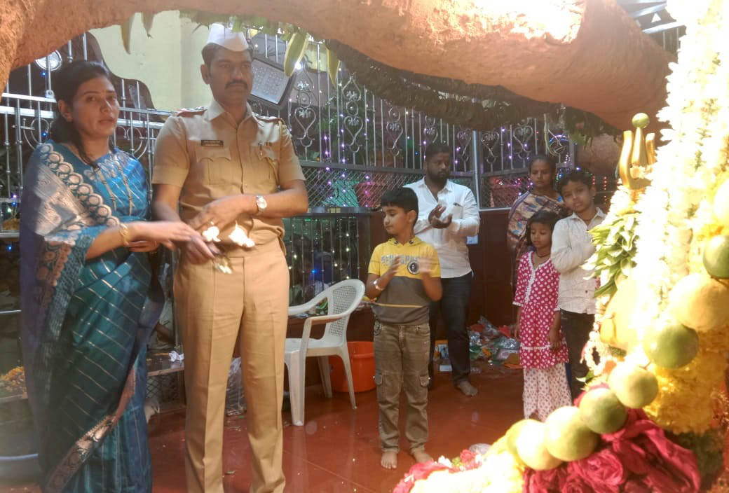 नवरात्राच्या पार्श्वभूमीवर एमआयडीसी पोलीस स्टेशनचे सहाय्यक पोलीस निरीक्षक माणिक चौधरी यांनी सपत्निक श्री रेणुका माता देवीची आरती करून दर्शन घेतले.