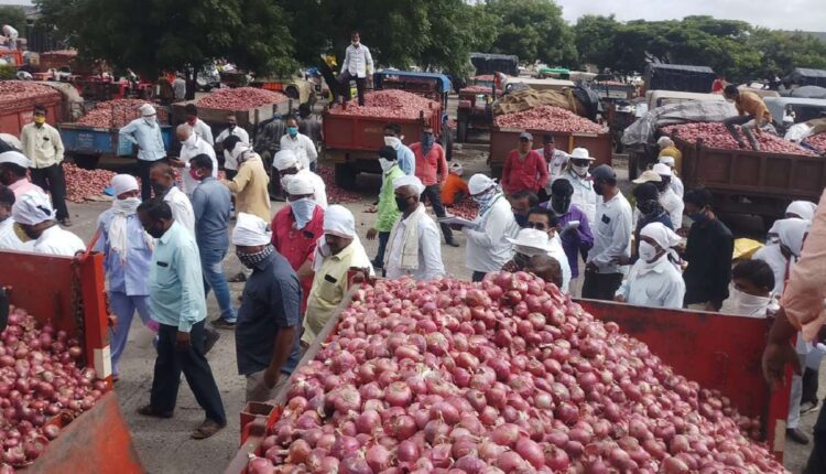 कांद्याच्या भावात प्रतिक्विंटल मागे शंभर ते दोनशे रुपयांची घसरण