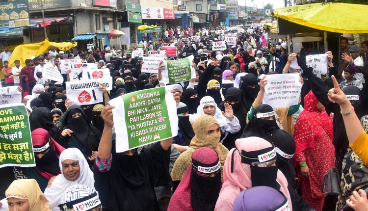 | मुस्लिम महिलांचा पोलीस अधीक्षक कार्यालयावर मोर्चा – धार्मिक अपमानाविरुद्ध प्रचंड प्रतिक्रिया