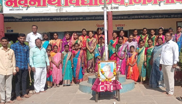 नगर (प्रतिनिधी)- निमगाव वाघा (ता. नगर) येथे नवनाथ विद्यालय, स्व.पै.किसनराव डोंगरे बहुद्देशीय संस्था, धर्मवीर ग्रामीण सार्वजनिक वाचनालय व श्री नवनाथ युवा मंडळाच्या वतीने क्रांतिज्योती सावित्रीबाई फुले जयंती साजरी करण्यात आली. विद्यालयात सावित्रीबाई फुले यांच्या वेशभूषेत आलेल्या मुलींनी मुलगी वाचवा… मुलगी शिकवाचा संदेश दिला.
