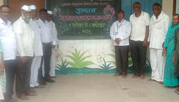 गावातील निरक्षर ग्रामस्थांना साक्षरतेचे धडे