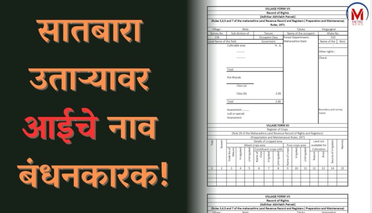 सातबारा उताऱ्यावर आईचे नाव बंधनकारक!